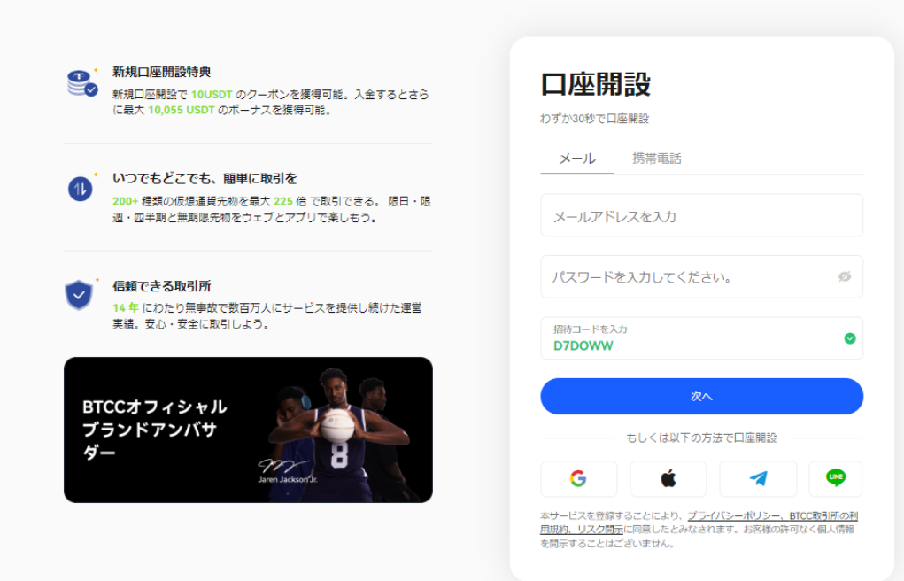 BTCCの口座開設は非常にシンプルで、わずか4ステップで完了します。